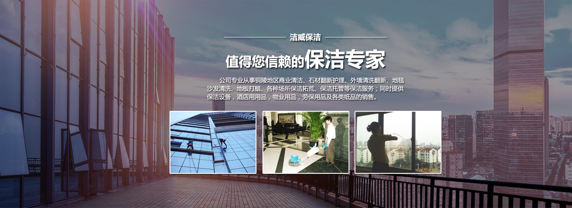 銅陵潔威保潔公司努力打造銅陵保潔行業(yè)的優(yōu)質(zhì)服務(wù)。您的滿意,我們的追求,潔威公司竭誠(chéng)為您服務(wù) !